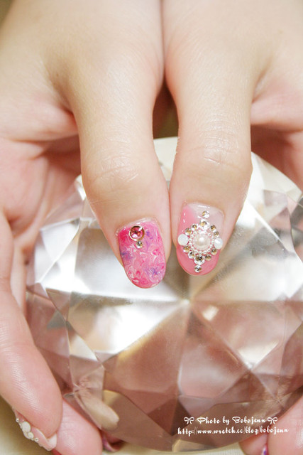 我自己都把指甲剪的很短,所以指甲小到貼顆鑚就快滿了XD
