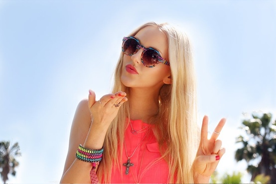 我在lookbook瀏覽到的一位blogger-Daniela Ramirez,它就很擅長搭配圓框墨鏡的搭配哩