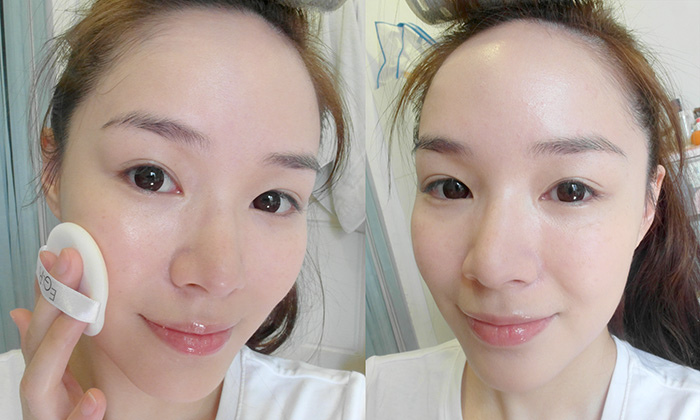 隔離霜上好了之後,使用一般粉餅輕輕拍在全臉