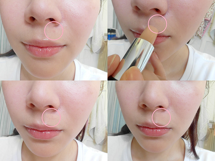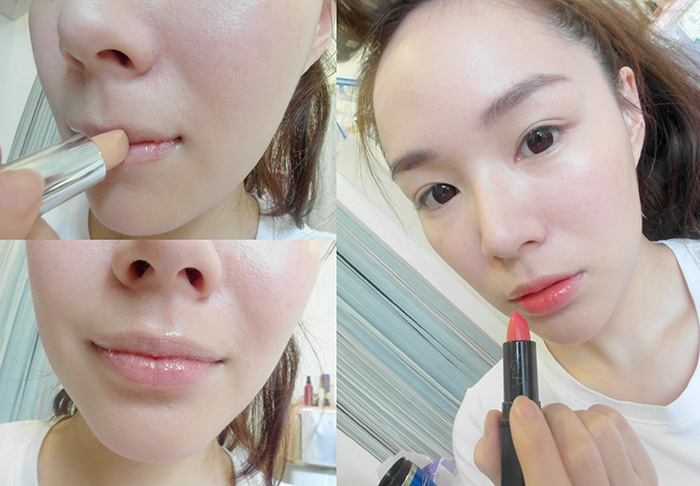 輕輕的抿嘴後,在嘴唇上使用遮瑕~