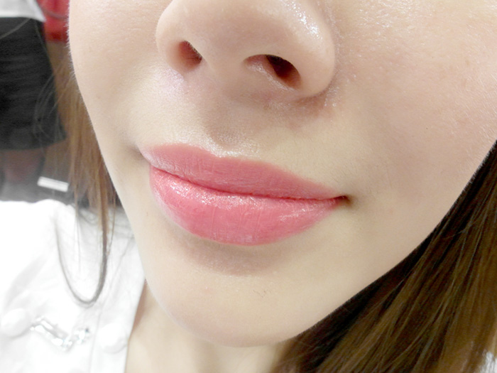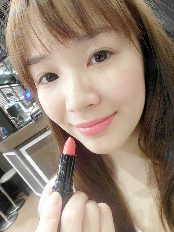 他真的好不乾喔!因為我以前會用粉餅呀在嘴唇上,馬上會讓嘴皮乾爆,用這支都不會(感動~