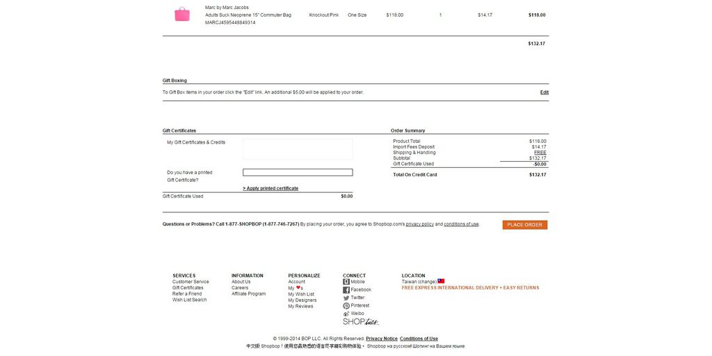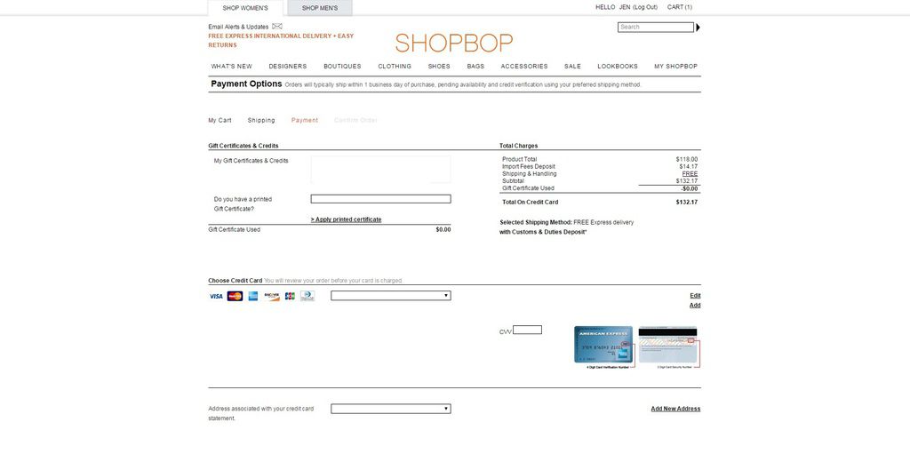 (不過SHOPBOP很貼心的地方是它會記錄你的信用卡與帳單資訊,根本就是引誘下單犯罪呀!)